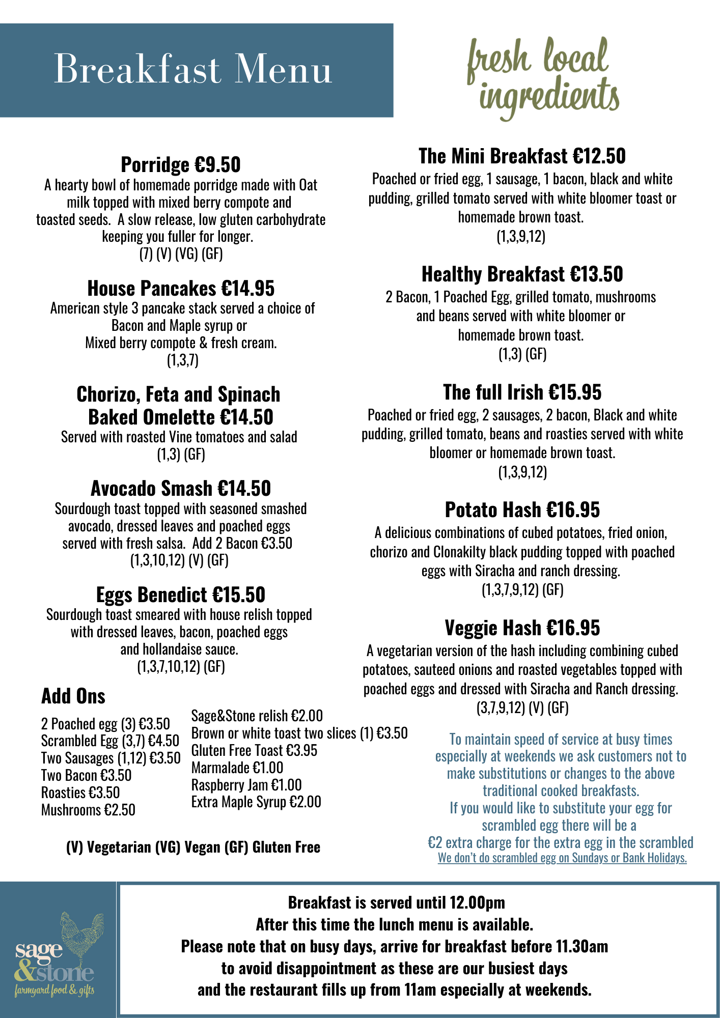 Sage & Stone Menus